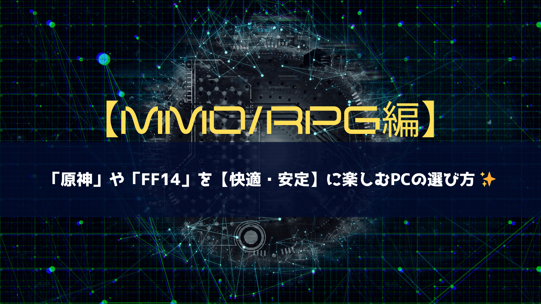 「原神」や「FF14:黄金のレガシー」といった美麗なMMO/RPGを、カクつきなく、ストレスなく安定して楽しみたい方へ。